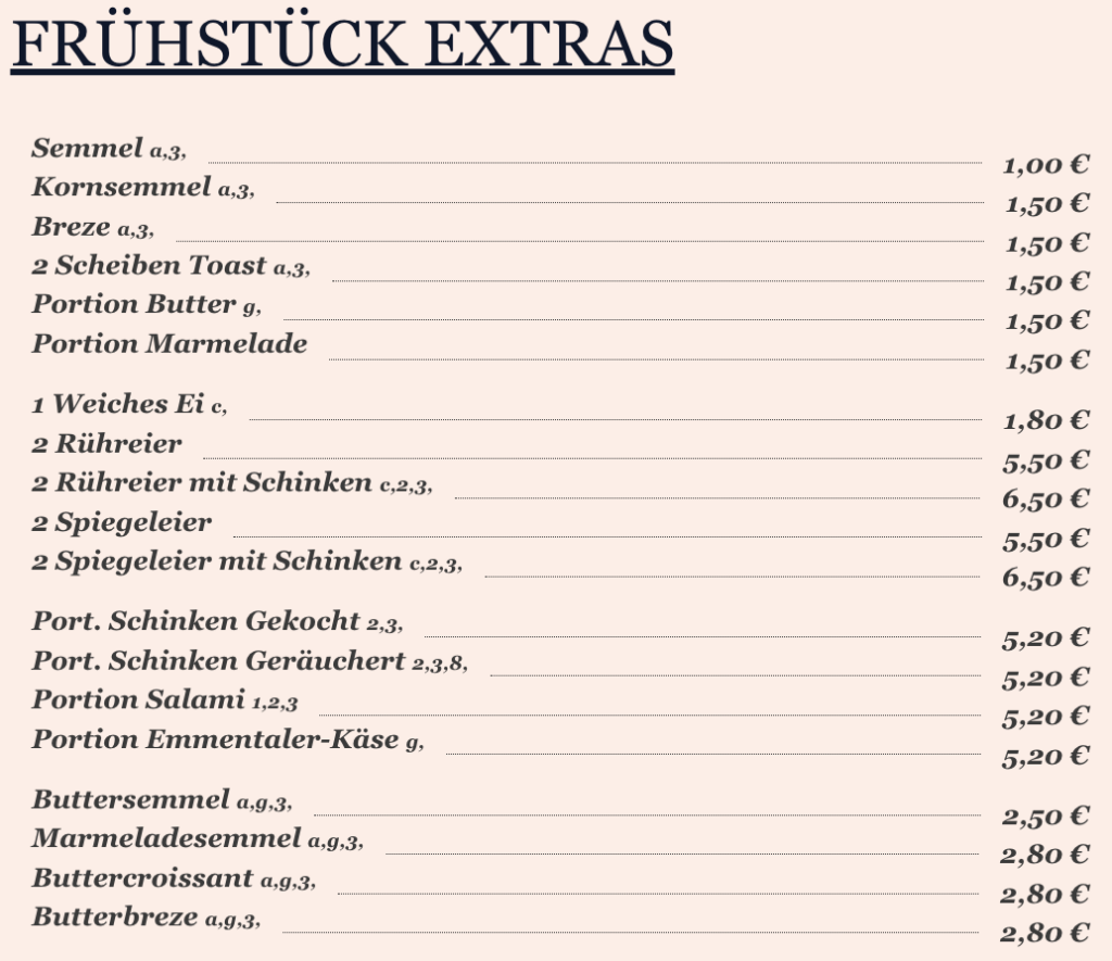 7,50 €FRÜHSTÜCK EXTRAS