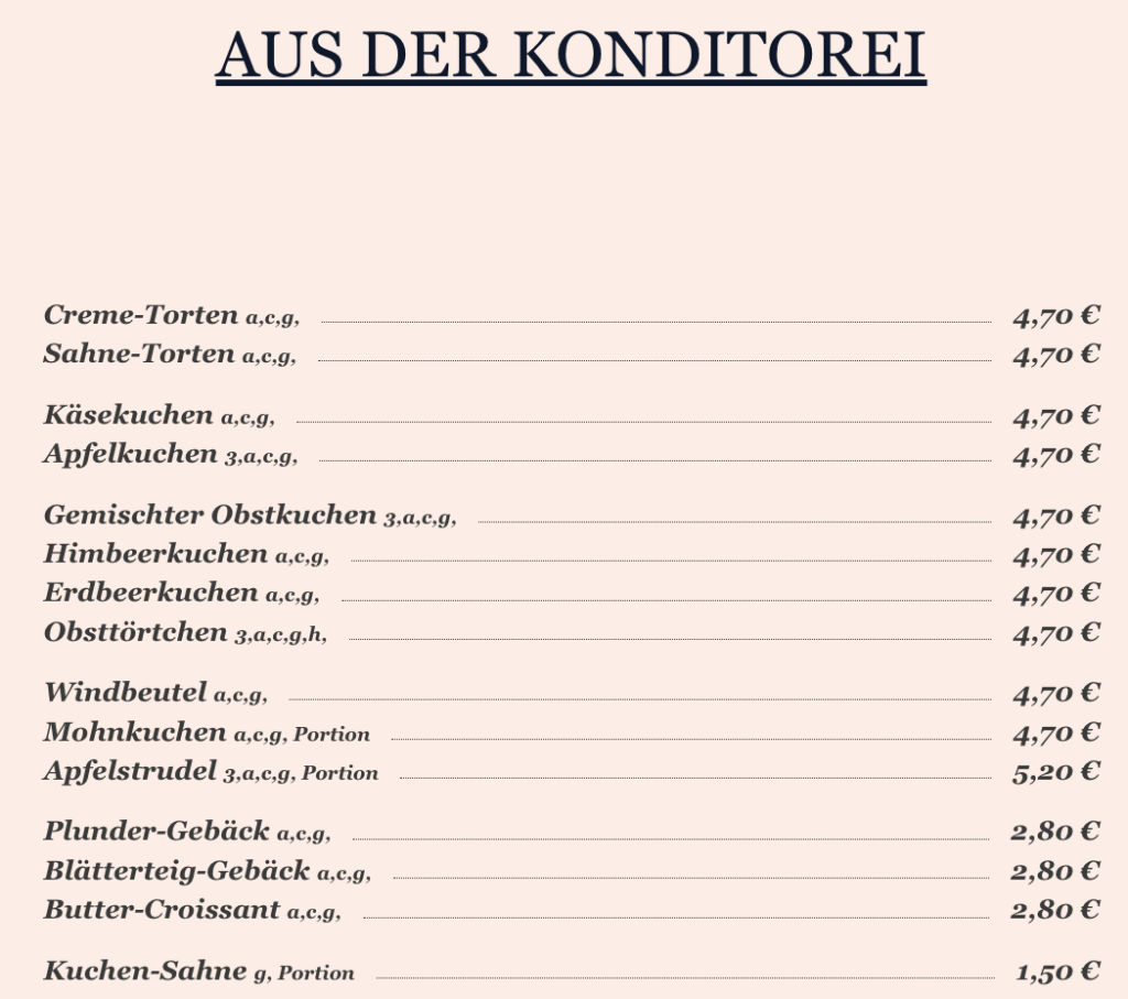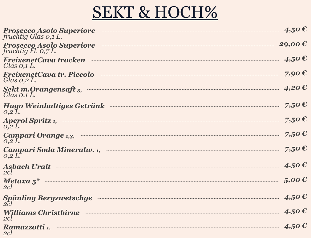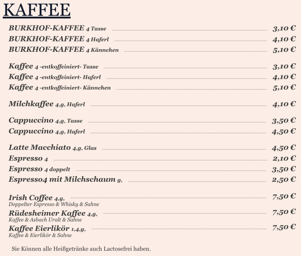 7,50 €Kaffee & Asbach Uralt & Sahne